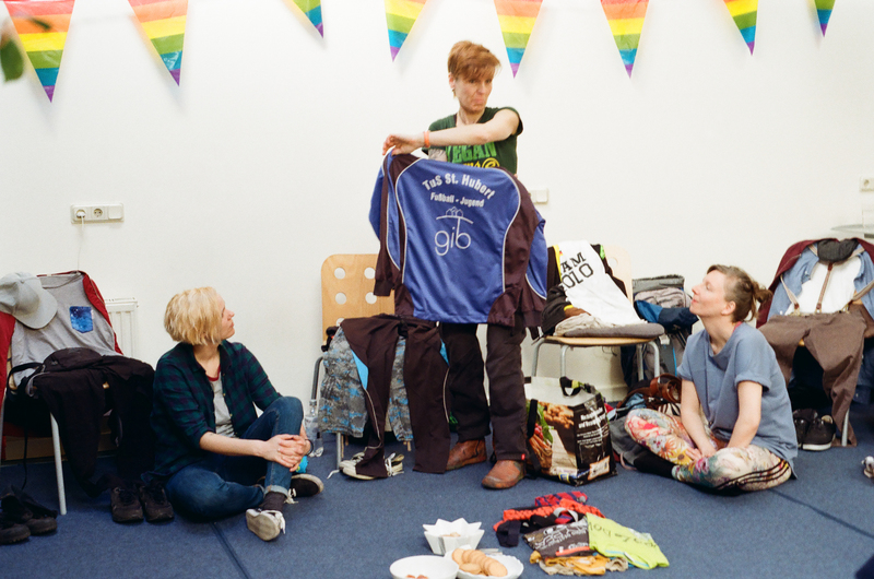 Bei dem „She’s the man*“ -Workshop geht es an zwei Tage mit einer gehörigen Portion Stereotype, Humor und Philosophie, aber auch Faktenwissen zum Thema Queer-theorie (vgl. auch J.Butler) und Doing Gender in Gesprächen, Übungen (Stimmübungen, Gestik und Mimik, Bewegung, Verhaltensmuster usw.), Rollenspielen, Videoanalysen und dann auch draußen in der Kölner Innenstadt sowie auf Abendveranstaltungen richtig zur Sache. Hier wird gecheckt ob das „Passing“ funktioniert – ob die Teilnehmenden so gut ihre Männerrollen einstudiert haben, dass sie von Passant_innen nicht erkannt werden und damit in den Genuss männlicher Privilegien kommen dürfen.